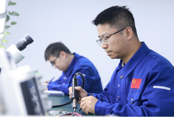 世紀(jì)衛(wèi)星公司高通量衛(wèi)星通信系統(tǒng)團(tuán)隊(duì)正朝著目標(biāo)任務(wù)發(fā)起沖鋒。團(tuán)隊(duì)裝配人員在工作臺(tái)上給公司自主研發(fā)的BCS 寬帶衛(wèi)星通信系統(tǒng)主板更換測(cè)試元件,展現(xiàn)奮斗者姿態(tài)。