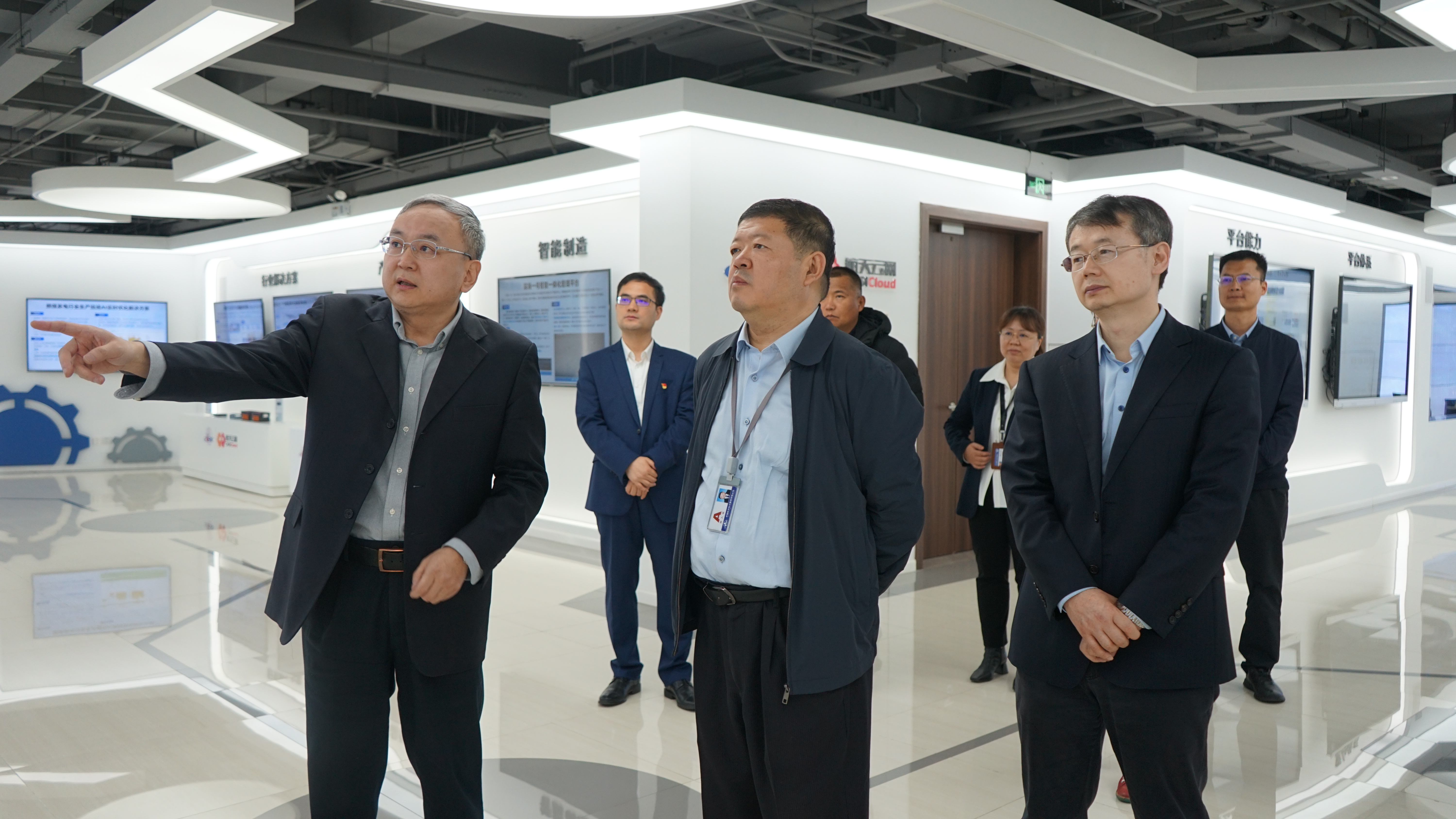 周進軍參觀了航天云網展示體驗中心,詳細了解了航天云網服務數字航天的技術產品及典型案例,聽取了航天云網公司工作匯報,并對后續工作提出5方面要求:
