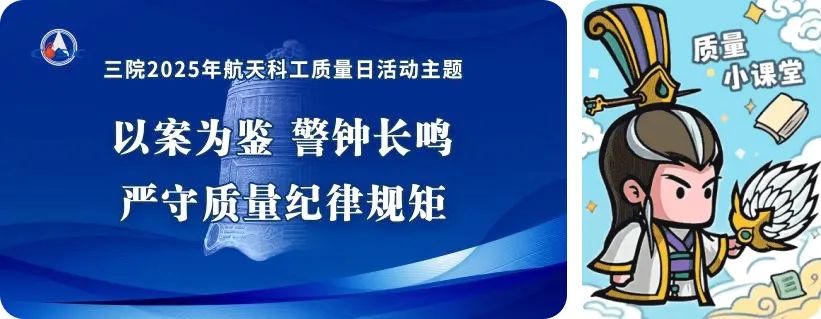 按照集團(tuán)公司部署安排,航天三院周密策劃,專(zhuān)題制定《關(guān)于開(kāi)展2025年航天科工質(zhì)量日系列活動(dòng)的通知》,精心組織院屬各單位開(kāi)展了以“以案為鑒,警鐘長(zhǎng)鳴,嚴(yán)守質(zhì)量紀(jì)律規(guī)矩”為主題的航天科工質(zhì)量日系列活動(dòng)。