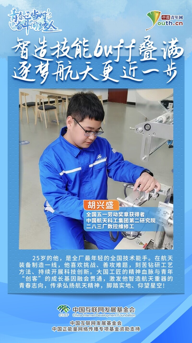 智造航天重器,筑夢航天強國,每當一個航天產品順利交付,胡興盛都心懷期許,“我們離天空更近了一步”,他說,“能把青春揮灑在航天事業里,是特別值得的事情”。(中青報·中青網記者 劉尚君 實習生 陳星宇)