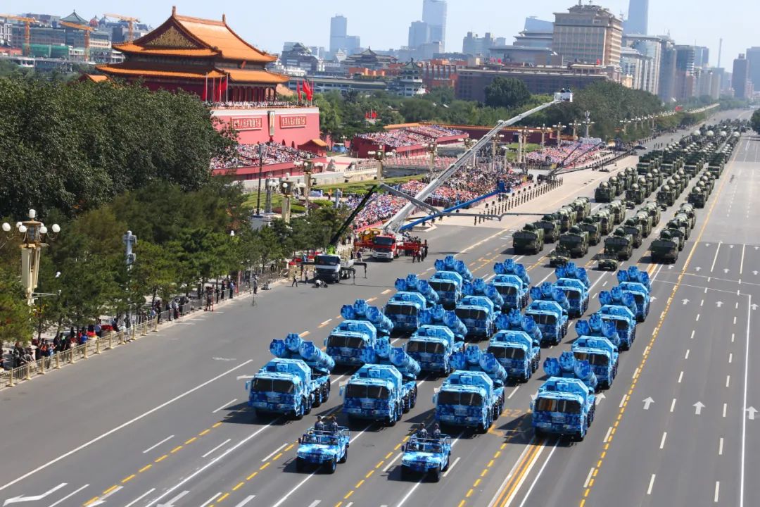 2015年9月3日,北京天安門廣場,中國首次抗戰(zhàn)勝利日大閱兵隆重舉行。閱兵式上,航天科工以超過總地面裝備方隊1/3占比、導彈裝備近2/3占比的導彈家族陣容威武亮相,共計11型裝備、4型專用車輛接受祖國和人民的檢閱。這些導彈武器裝備涵蓋地面突擊、防空反導、海上攻擊等作戰(zhàn)體系,覆蓋“空海陸”“遠中近”“高中低”各區(qū)域,構(gòu)筑起我國新一代防務(wù)對抗體系。