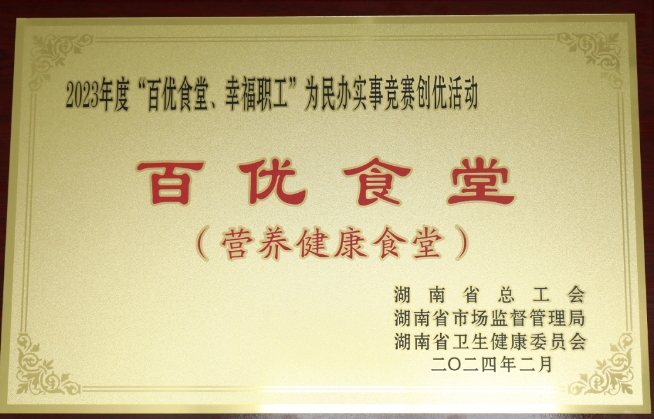 日前,由湖南省總工會(huì)、湖南省市場(chǎng)監(jiān)督管理局湖南省衛(wèi)生健康委員會(huì)共同組織開展的2023年度“百優(yōu)食堂、幸福職工”為民辦實(shí)事競(jìng)賽創(chuàng)優(yōu)活動(dòng)結(jié)果出爐,中國(guó)航天科工湖南航天職工食堂“食”至名歸,喜獲2023年度百優(yōu)食堂(營(yíng)養(yǎng)健康食堂)榮譽(yù)稱號(hào)。