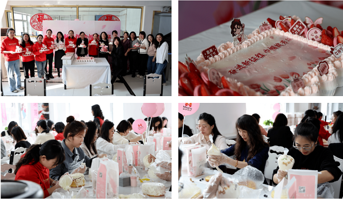 院本部的女職工們化身甜品大師,發揮自己的想象力與創造力,抹奶油、裱花裝飾、、擺放水果,全身心投入,制作出屬于自己獨一無二的蛋糕。