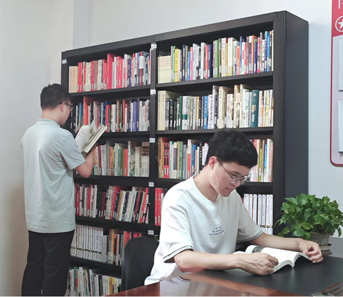 圖書角里,專業(yè)書籍、文學(xué)名著整齊排列,技術(shù)部門小李表示:“上次項(xiàng)目遇難題,來這里翻書找靈感,和同事一聊,思路就有了。”